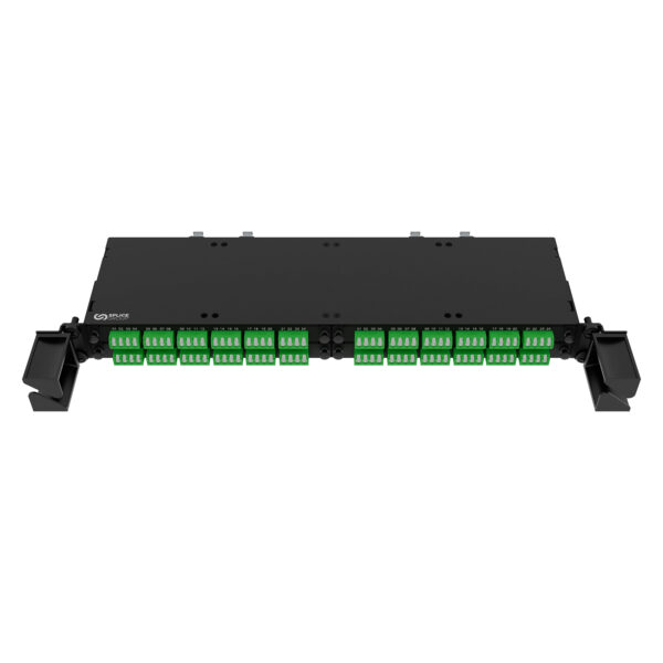 The SpliceGroup™ 4-Way Customer Termination Panel (CTP) is a compact, modular 1U front-access panel designed for high-density fibre management. It supports up to four SpliceGroup™ Standard Modules (STM) or CTP cassettes, providing a capacity of up to 96 fibres with small-form-factor connectors.