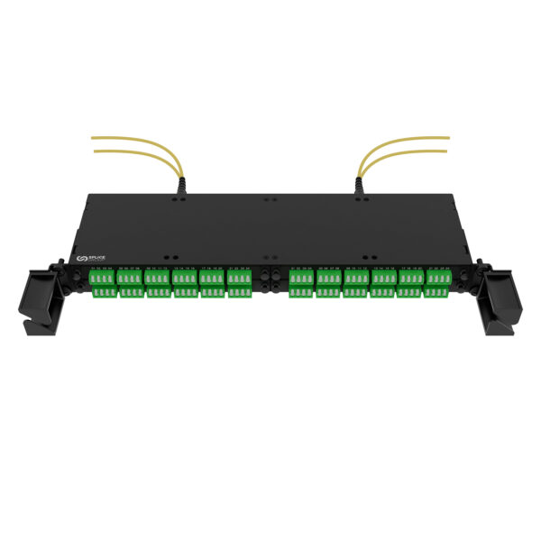 Front-loading modules enable quick configuration changes without disturbing existing fibres. The splitchassis design allows independent module handling, and optional rear cable-management accessories are available.
