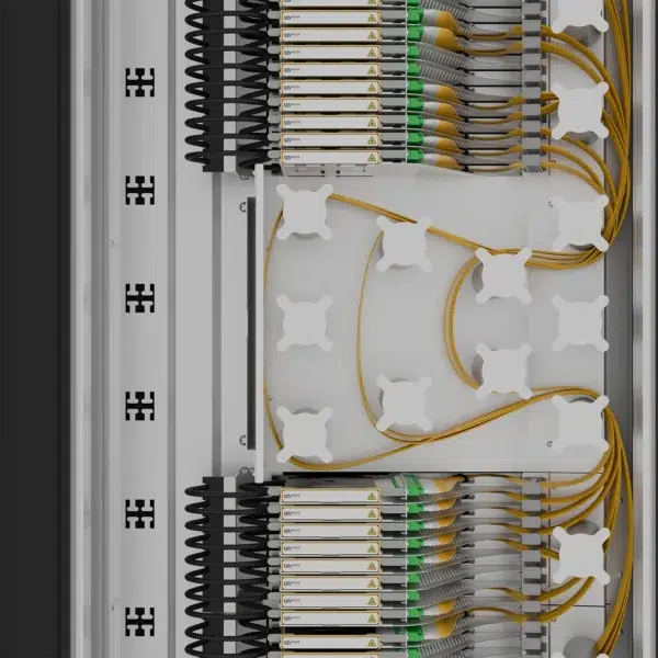 The F750 Optical Distribution Frame is a high-density, modular cross-connect platform designed for efficient fibre splicing, termination, and patching. Its compact 300 mm depth and front-access architecture enable seamless installation in space-constrained environments,